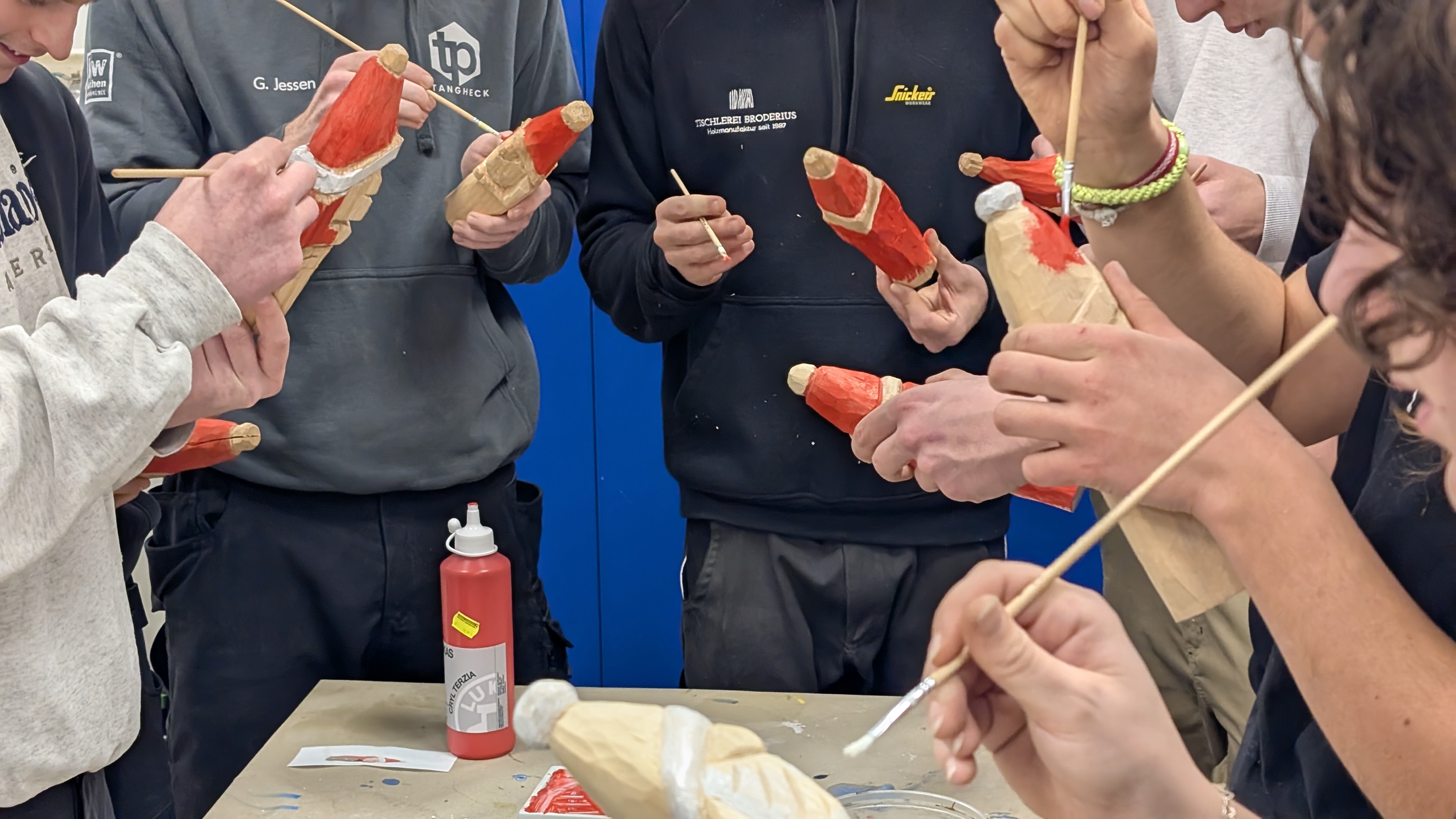 Danach konnten die Tischler eine zeitgemäße kleine „Skulptur“ schnitzen und zum Abschluss farbig fassen.